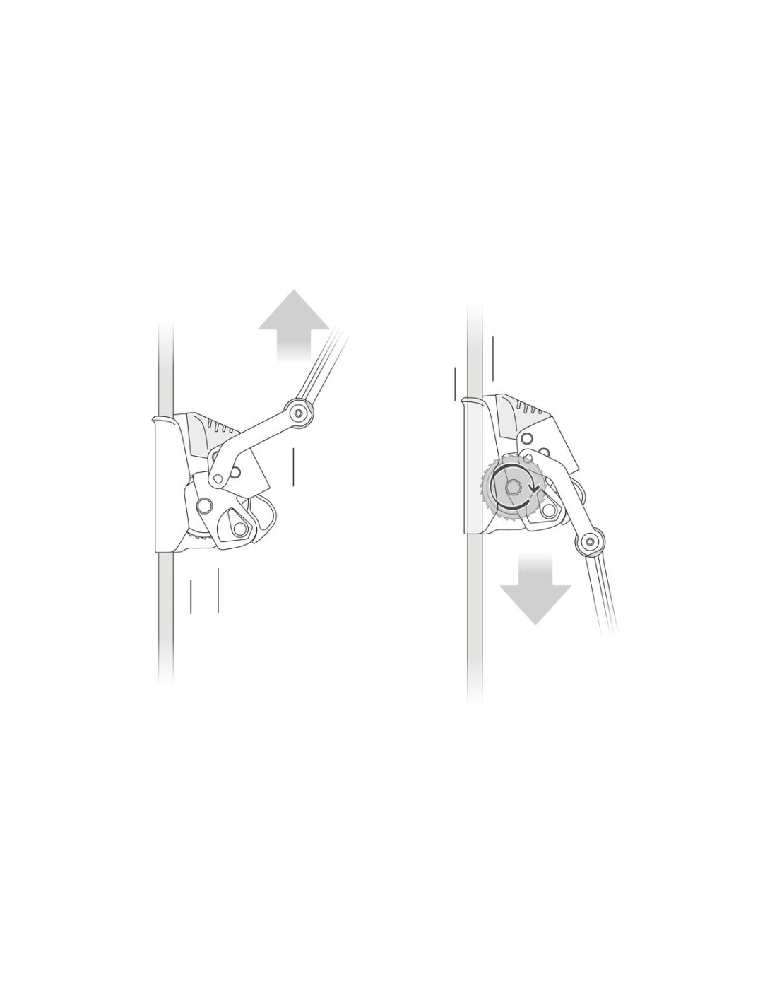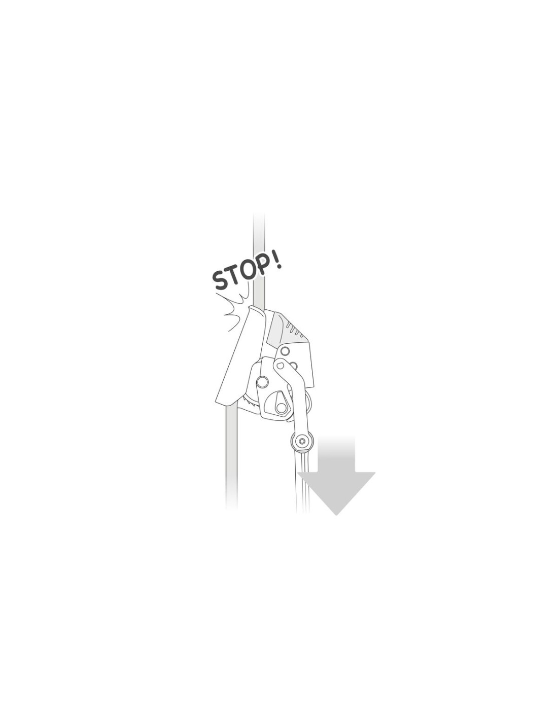 La fonction de blocage intégrée permet d’immobiliser l’appareil pour limiter la hauteur de chute ou stabiliser la position de travail. Le bras de connexion rend le système imperdable et facilite le passage des fractionnements sur corde.