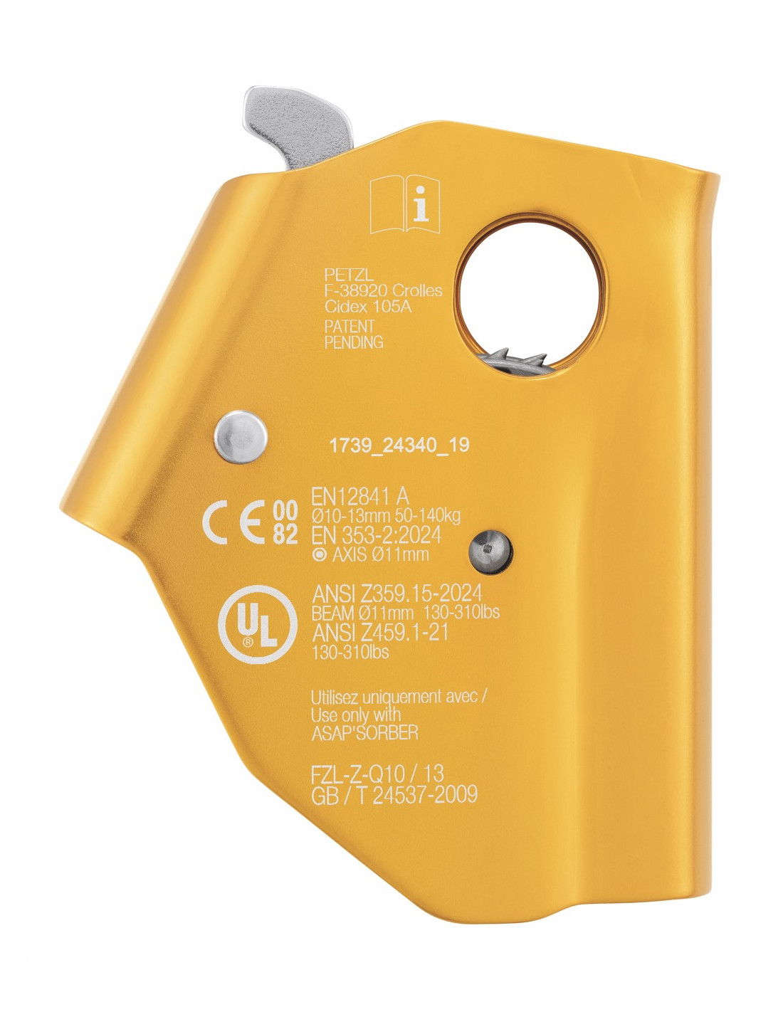 - CE EN 12841 type A : dispositif de sécurité pour systèmes d’accès sur corde.