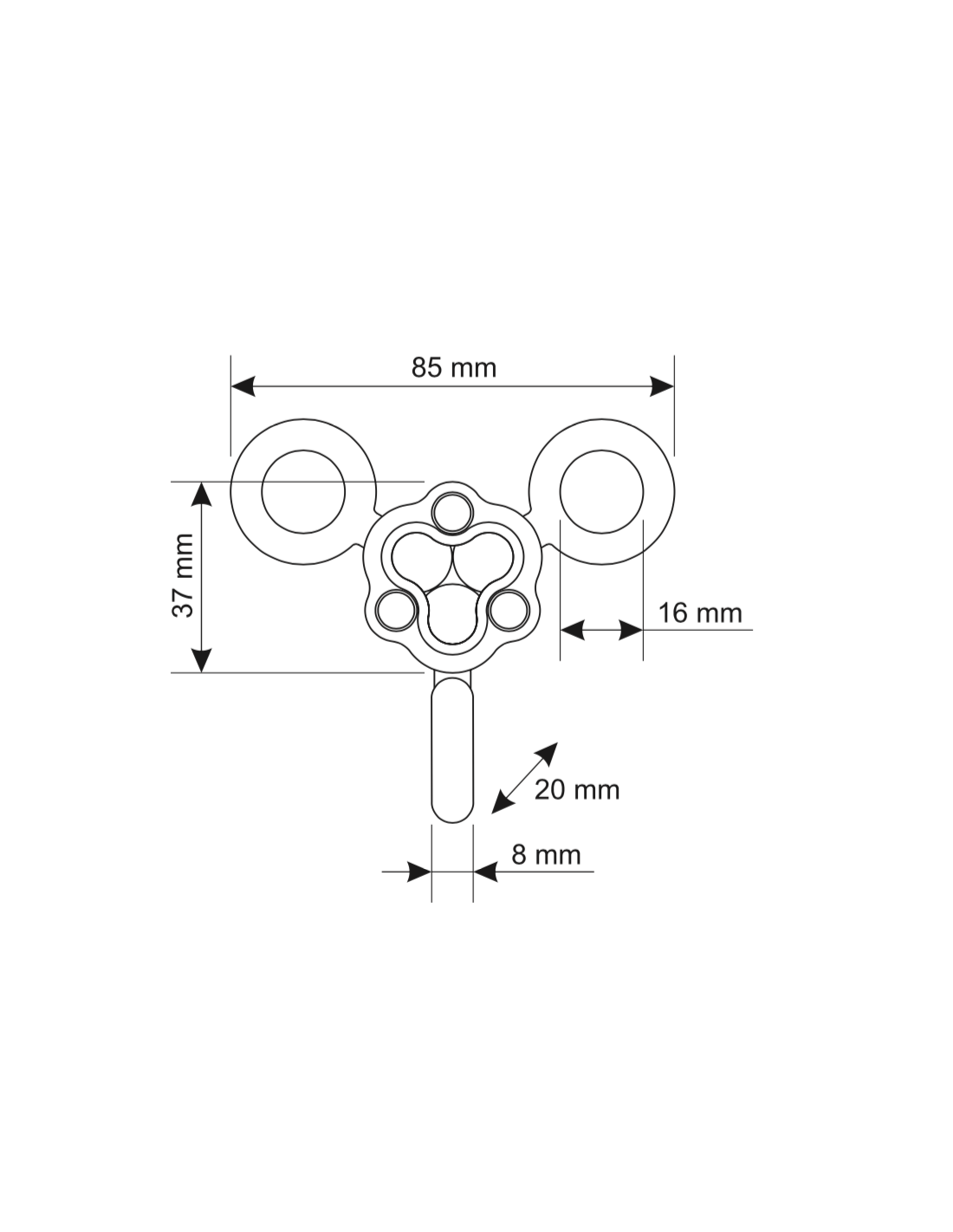| Diamètre des trous | 3 × Ø 16 mm |