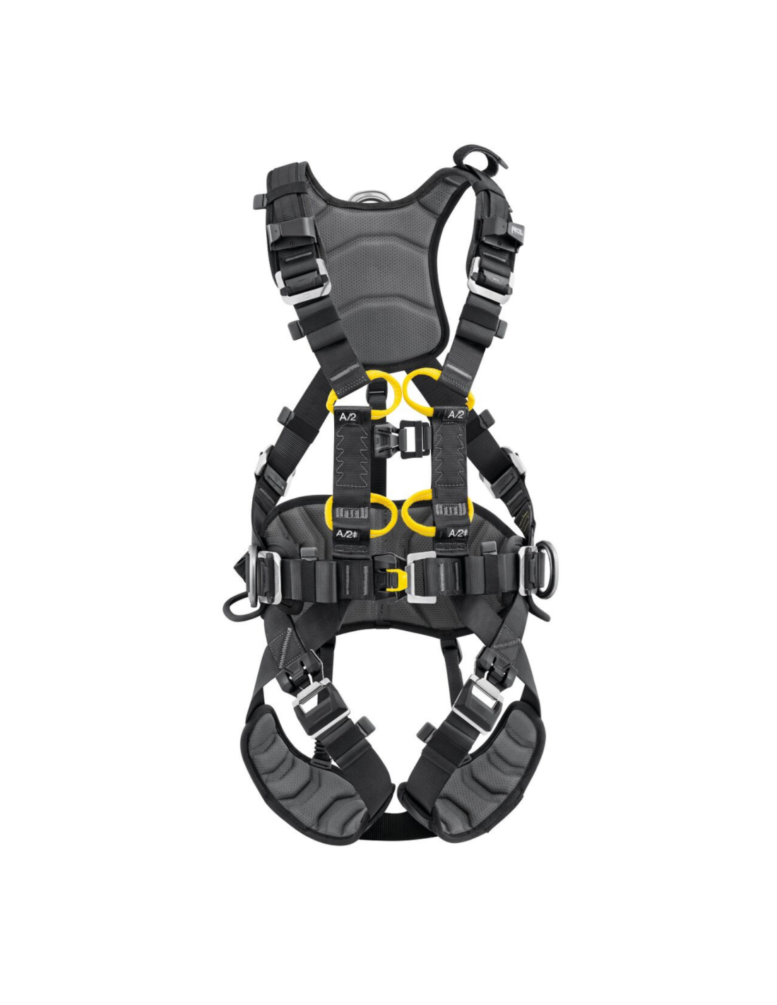Harnais antichute 5 points Petzl pour travail en hauteur en environnement offshore. Confort, sécurité et résistance aux milieux humides et salins.