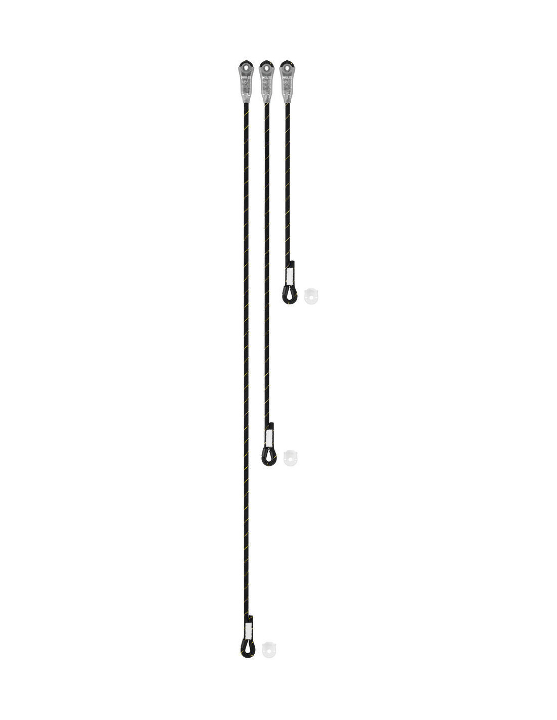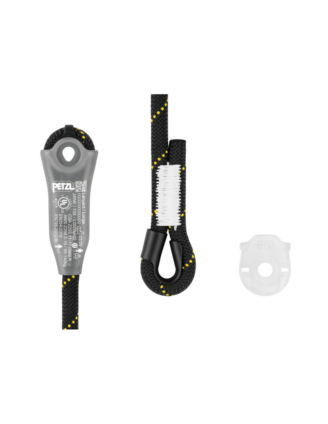 Sa gaine plastique rigide maintient le mousqueton en position, facilitant le mousquetonnage et protégeant la terminaison contre l’usure prématurée. Elle peut également servir à réaliser un amarrage temporaire, grâce à sa compatibilité avec divers connecteurs Petzl. L’identification individuelle sur la gaine permet de suivre chaque longe tout au long de son cycle de vie.