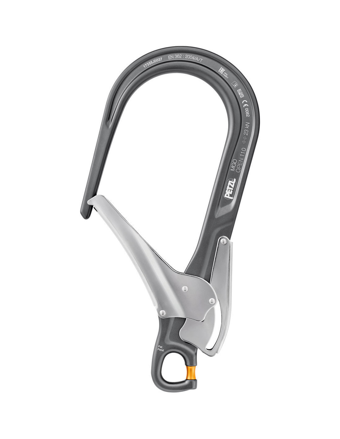 PETZL®Le Petzl MGO OPEN 110 (M080AA00) est un connecteur directionnel à très grande ouverture (110 mm) et à verrouillage automatique, spécialement conçu pour se connecter à des structures métalliques, câbles et barreaux de grand diamètre.